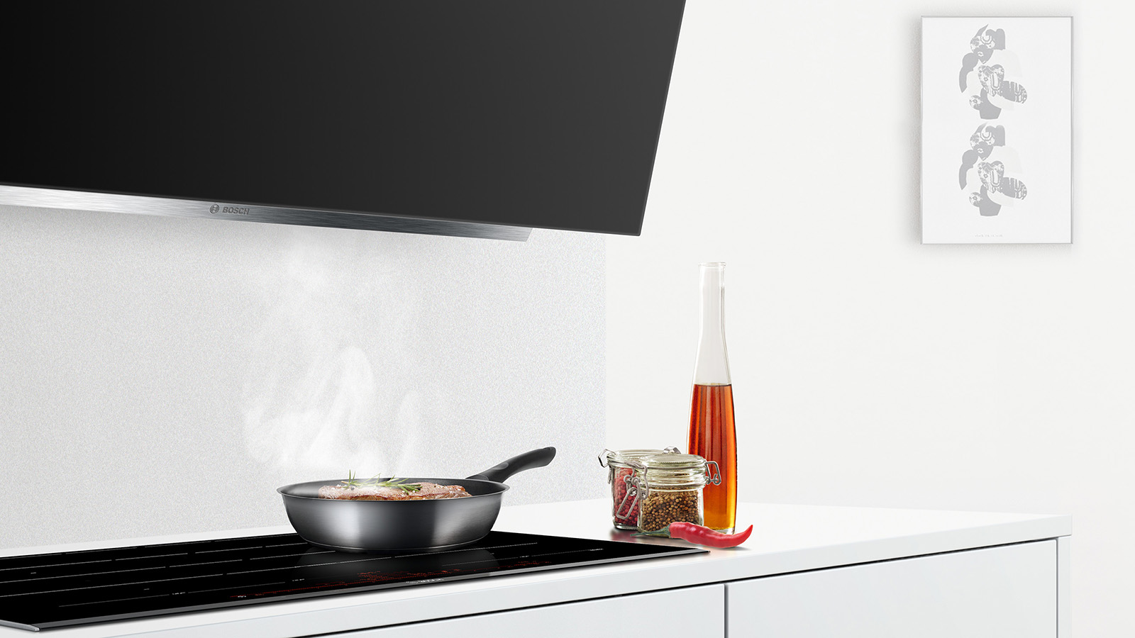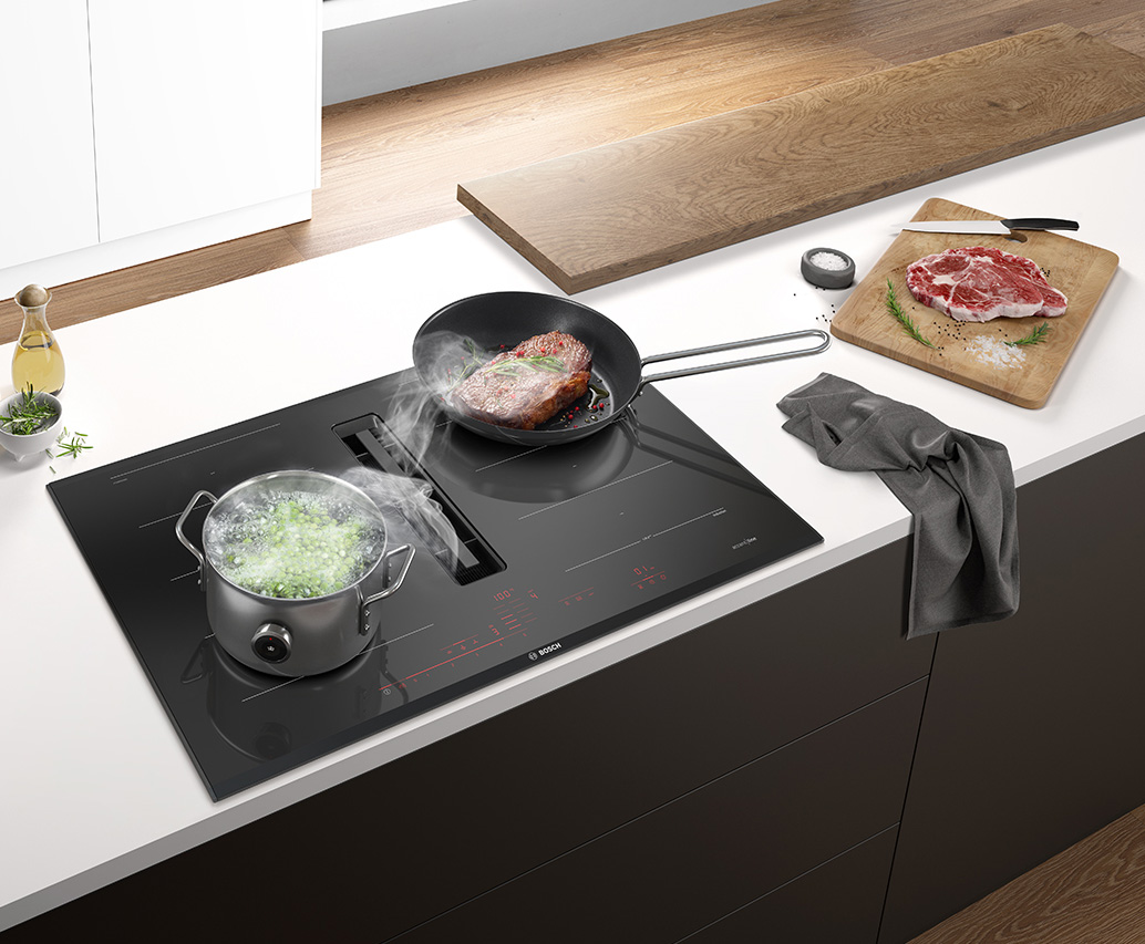 Kochen ist Leidenschaft. Für perfekte Ergebnisse in Ihrer Küche kommt es nicht allein auf die Zutaten an, sondern auch auf die Technik. Bosch accent line Kochfelder für die moderne Küche unterstützen Sie mit innovativer Sensortechnologie. Der PerfectCook Kochsensor sorgt für eine präzise Regulierung der Temperatur im Kochtopf, die Überkochen oder Verkochen verhindert. Mit dem PerfectFry Bratsensor können Sie Ihr Steak genau auf den Punkt braten – egal, ob rare, medium oder well done. Temperaturen in der Pfanne werden präzise angepasst und unterstützen Sie beim kreativen Kochen. Braten Sie ganz ohne störende Gerüche mit dem integrierten Dunstabzug. Der PerfectAir Luftgütesensor misst ständig die Luft und passt die Leistungsstufe automatisch an Kochdunst und Gerüche an. In Ihrer hochwertigen Küche kochen Sie wie ein Profi.