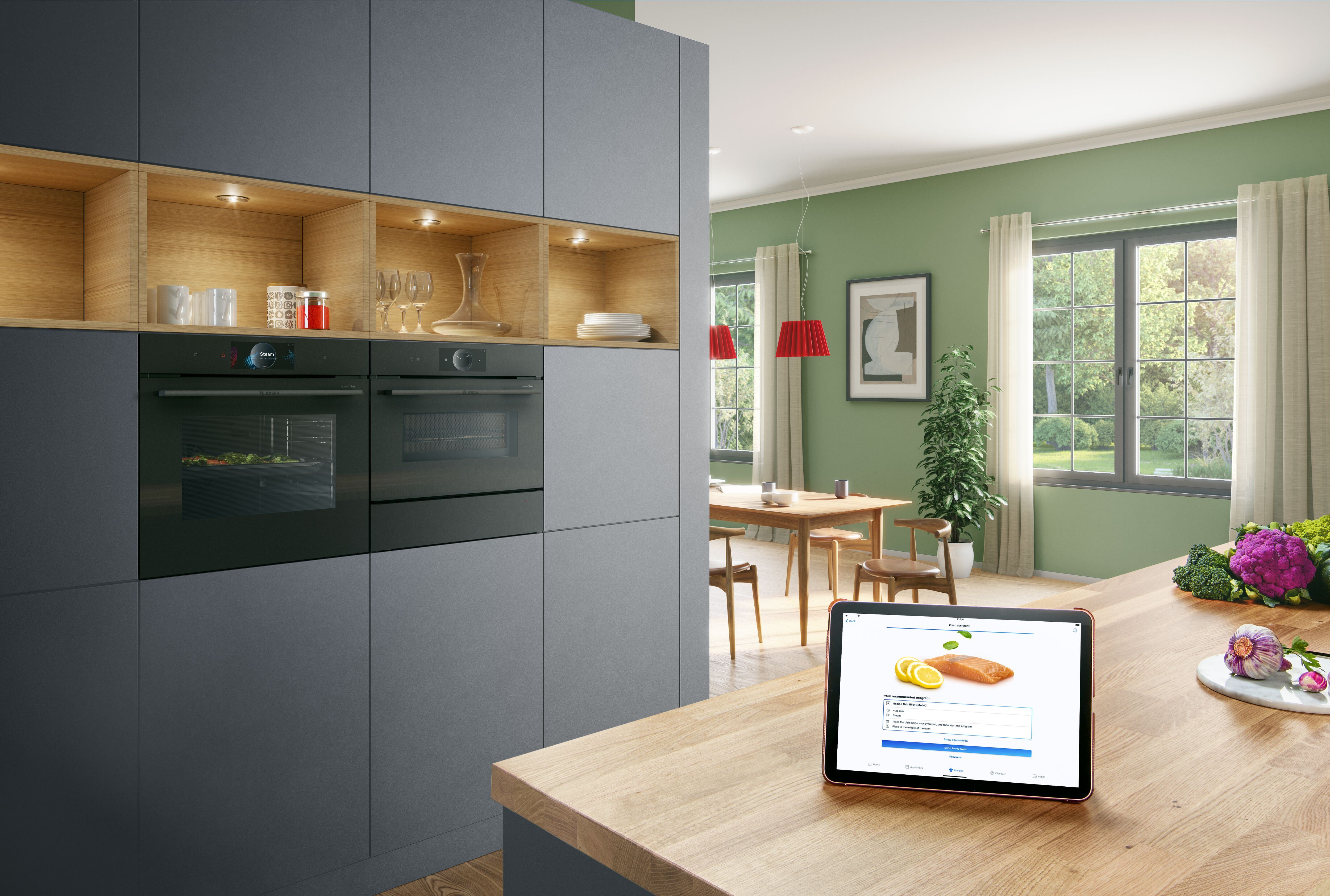 Das accent line Küchensortiment von Bosch bietet Premium-Elektrogeräte für eine hochwertige und moderne Einbauküche, die höchste Ansprüche erfüllen. Sorgen Sie mit intelligenter Sensortechnologie für perfekte Ergebnisse beim Kochen und Backen. Nutzen Sie die Bosch accent line Geräte, um mit Home Connect von unterwegs aus nachzuschauen, ob noch genügend Butter für den Lieblingskuchen im Kühlschrank ist. Die Bosch accent line bietet Ihnen moderne Geräte mit ausgezeichnetem Design für die Ausstattung Ihrer hochwertigen Küche mit allen Finessen der Technik. Kochen und backen Sie auf höchstem Niveau, mit der bestmöglichen Unterstützung von Bosch!