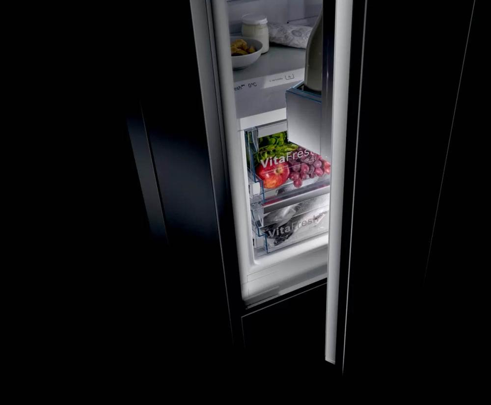 Bosch accent line carbon black Kühl- & Gefriergeräte bieten Ihren Lebensmitteln ein stilvolles Zuhause. VitaFresh pro Frischeschubladen mit zwei unterschiedlichen Klimazonen halten Ihre Lebensmittel bis zu 3x länger frisch. FreshSense Sensoren kontrollieren und steuern permanent die Umgebungs-, Kühlschrank- und Gefrierschranktemperatur. Dank NoFrost gehört Abtauen der Vergangenheit an.
