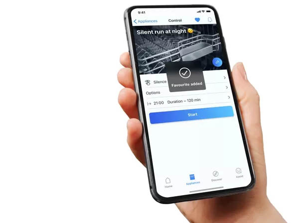 Die Zukunft wird smart. Mit Home Connect ist sie es schon heute. Denn alle PerfectDry-Geräte sind jetzt zu 100% Home-Connect-fähig. Man kann den Bosch accent line Geschirrspüler aus der Ferne starten, sich immer und jederzeit über den aktuellen Status informieren, kann via App die Wasserhärte einstellen oder auch dem Kundendienst eine Ferndiagnose erlauben. Die am häufigsten genutzte Programm-Konfiguration dieses modernen Geschirrspülers kann als Favoritenprogramm gespeichert und per Knopfdruck aktiviert werden. Und wenn es mal mucksmäuschenstill sein muss, pausiert Silence on Demand den Premium-Geschirrspüler eine Zeit lang.