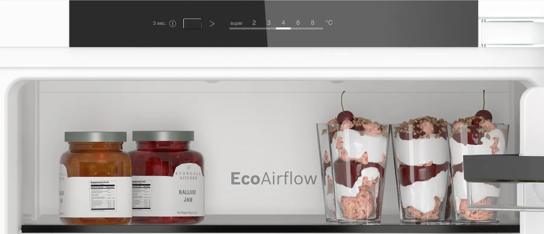 - Super Cooling: Kühlt neu eingelegte Lebensmittel schneller und bietet so Schutz für bereits Gekühltes